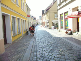 "Unseren Besitz von ca. 10 Kilogramm auf dem Rücken und natürlich die Sorge reicht meine Wasserflasche für die nächsten Kilometer. Wir merken unsere Muskeln und nehmen oft unsere Wanderstöcke zur Unterstützung. Irgendwie erreichen wir am späten Nachmittag Wurzen. Die Geburtsstadt von dem Dichter Ringelnatz nimmt uns in ihren Bann."