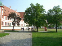Klostergebäude im Blickfeld und dazu das Glockenspiel:
